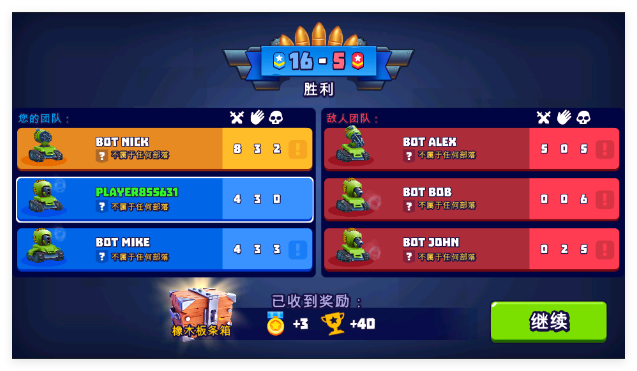 3、战斗中若被击败可在时间限制内复活,持续参与对战累积击杀数,最终凭借团队总击杀优势赢得胜利,获取奖励。