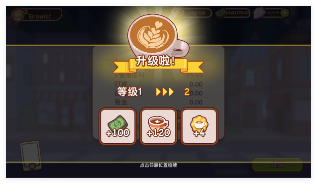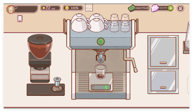 3、交付咖啡后收取费用,用盈利解锁新配方、升级设备或装饰店铺,吸引更多顾客光临。