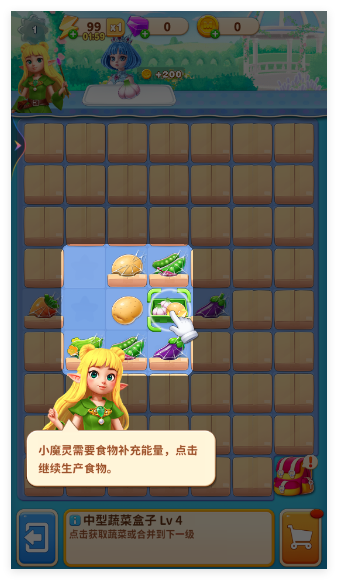1、进入游戏后,选择关卡开始挑战,尝试将相同方块横向或纵向聚集,完成首次合成操作。