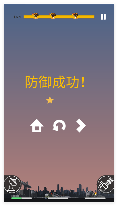3、当你通过这一关之后,页面就会显示你防御成功,显示星星的颗数,满星是三颗。