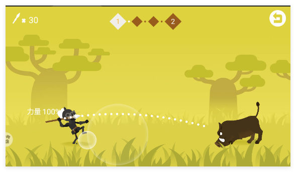 1、进入游戏后,按住屏幕蓄力,根据敌人位置调整角度,松开手指将武器精准投向目标。