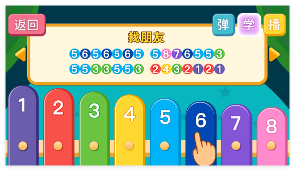 2、卡通风格与趣味玩法结合,摆脱传统乐器学习的枯燥感,让小朋友在玩乐中主动学习,真正实现“玩中学、学中乐”。