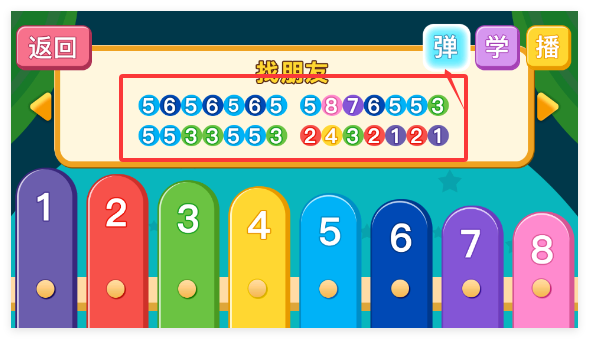 2、切换至“学”模式,跟随游戏的指引提示,逐个熟悉木琴琴键对应的音符,反复练习巩固基础弹奏技巧。