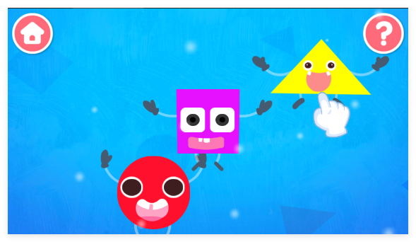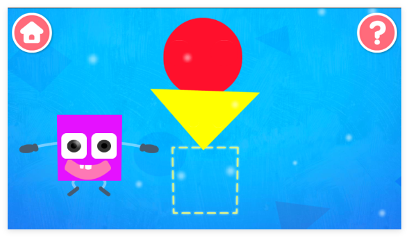 1、进入游戏后,宝宝将在卡通场景中接触圆形、方形、三角形等基础形状。