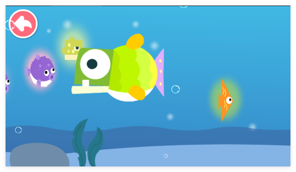 2、跟随游戏任务提示,点击对应形状让小鱼吃掉。
