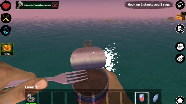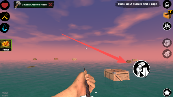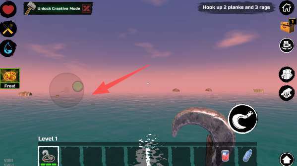 1、海上捞宝全靠那只神奇的钩子,瞄准漂流物潇洒一抛,再稳稳收线,家当就源源不断拖回木筏啦。