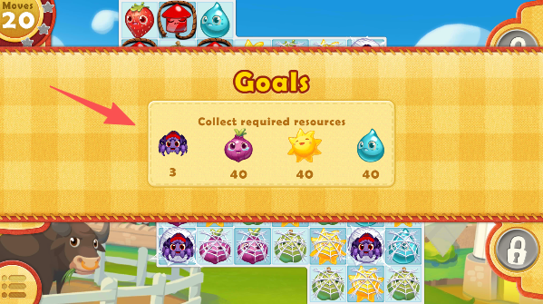 1、每个关卡都有明确的收集目标,如在限定步数内收集特定数量的苹果、胡萝卜等农作物,使消除行动具有明确目的性。