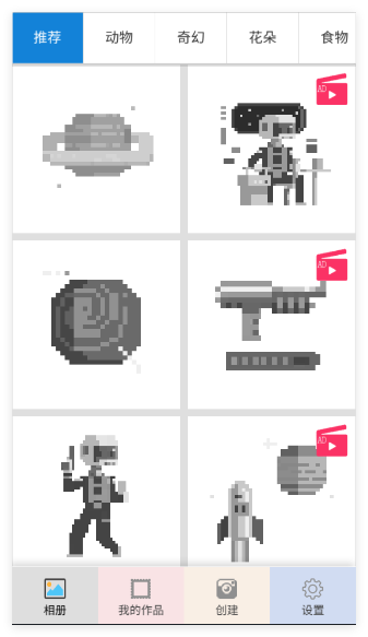 1、打开游戏后,浏览动物、植物、风景等多样题材的像素素描图,根据兴趣挑选心仪作品,做好涂色前的准备。
