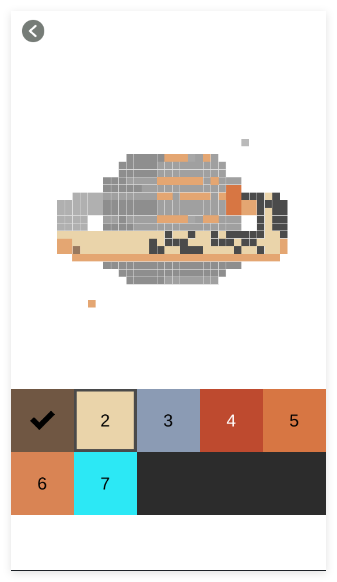 3、持续按提示完成全图涂色,将原本单调的素描图打造成栩栩如生的像素作品,解锁新内容开启下一轮创作。
