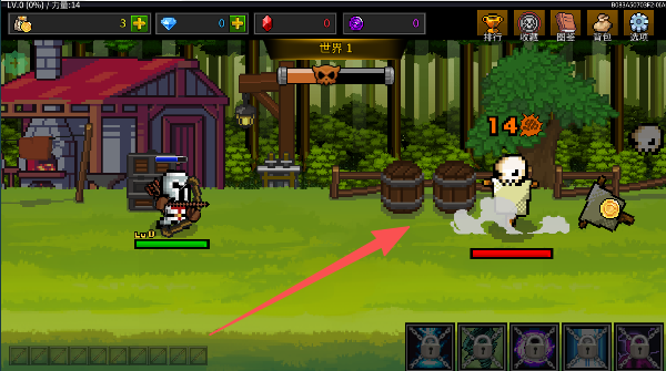 1、操控弓箭手在地图上自由移动,他会自动拉弓射箭,帮你轻松收割稻草人,积累宝贵经验。