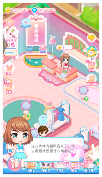 2、经营与装扮玩法相辅相成,既有无尽搭配的创意空间,又有店铺升级的成长乐趣,耐玩性与重复体验价值高。