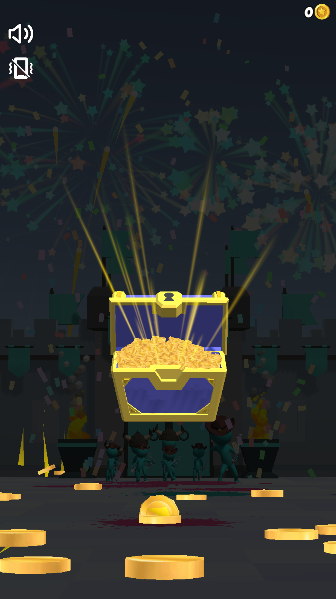 3、带着小弟们一路冲杀,干掉粉色的对手,冲到宝箱前开金币的感觉像过年收红包。