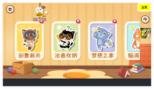 1、进入游戏,选择玩法模式,分别有创意新关、治愈收纳、梦想之家等各种新颖好玩的模式。