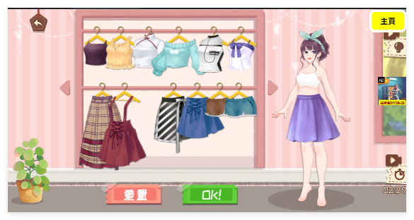 2、进入服装搭配,给这个美女换上好看的衣服吧,点击衣架右边的箭头可滑动查看下一排服装饰品。