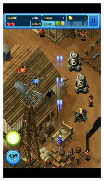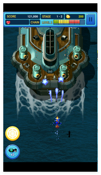 1、延续经典街机画风与垂直滚轴射击核心,还原过场动画与BOSS事件演出,搭配幽默剧情对话,赋予射击游戏丰富故事性。