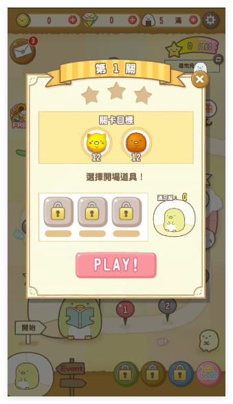 2、在关卡内,要在一定的步数内,消除需要的任务物品。
