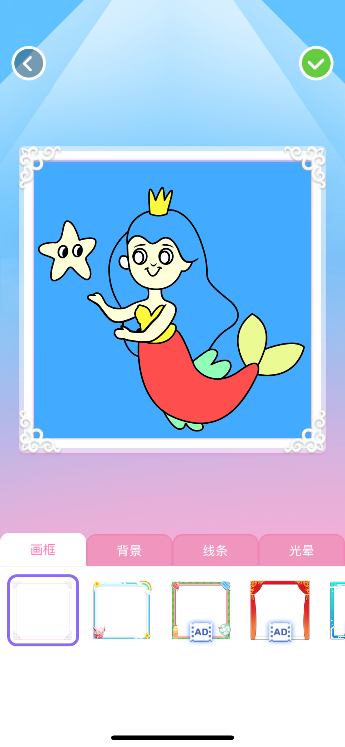 3、涂色完成后可欣赏成品,也可给图片换画框。