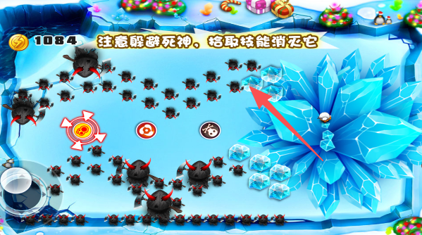 1、玩这重力感应游戏得学“走位”,贴着边儿溜达,被死神围堵就狂点屏幕闪现跑路。