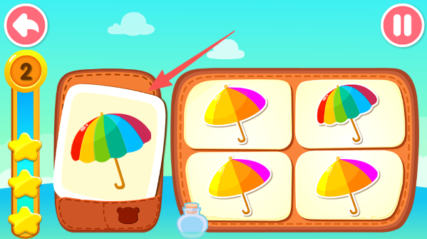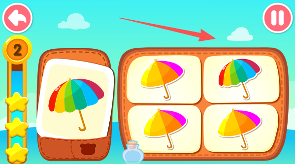 2、快快在右边一堆图片里,找出和左边长得完全一样的“双胞胎”,点它。