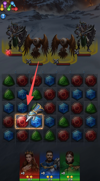 1、看准两个相邻的宝石,轻轻一换,让三个相同的一排,“砰”地一声就能砸向魔龙。