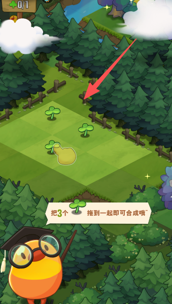 1、把三个小幸运草堆到一块儿,嘿,它们就会变魔术一样合成一个新宝贝。