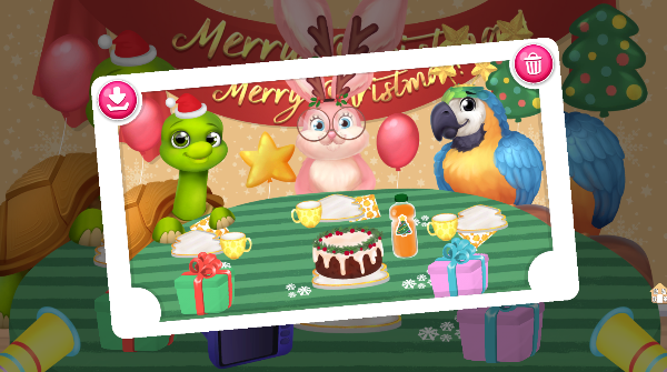 2、自由的场景装饰系统,提供多种主题的派对背景、桌椅、气球与彩带,可随意搭配组合。