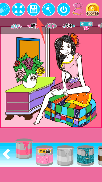 2、调色盘装满了梦幻色彩,随心搭配为公主涂上闪亮眼影和腮红,让她焕发独特光彩。