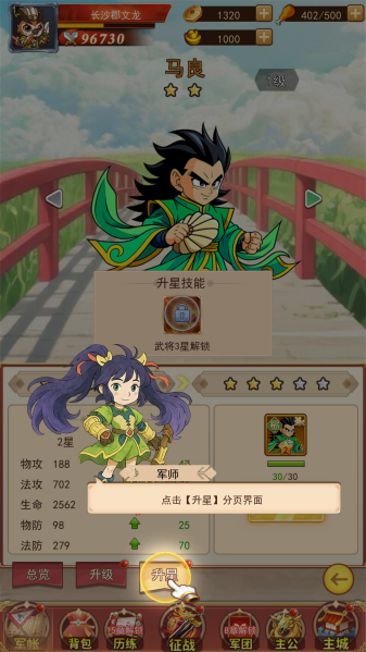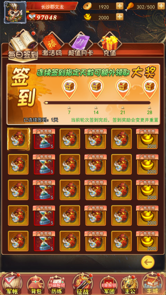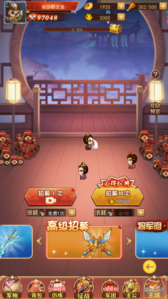 2、招募优先攒高级招募次数,重复武将转化碎片,核心武将升星优先级高于品质。