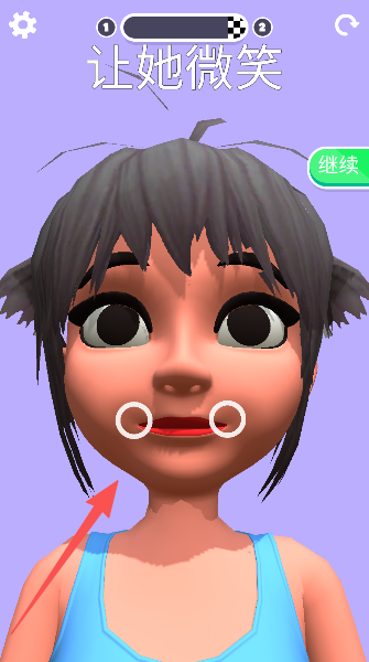 1、关卡任务下达啦,目标很明确——让这位角色嘴角上扬,露出一个灿烂的微笑吧。