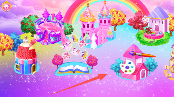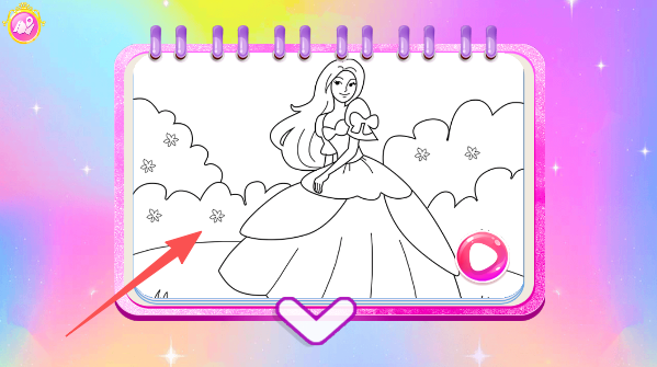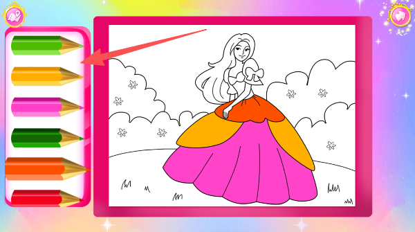2、给裙子涂上彩虹色,头发染成星空紫,点击颜色就能让公主华丽变身。