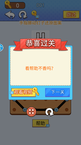 2、手指一划挪动钉子,像拼图一样把散落的钉子还原原图案。