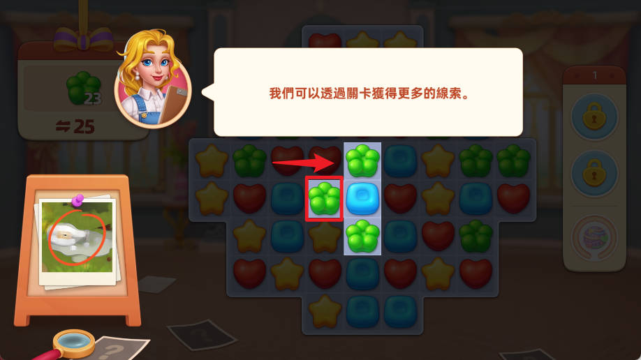 1、操作逻辑清晰,三消仅需滑动匹配元素,装扮通过点击选择完成,无复杂学习成本。