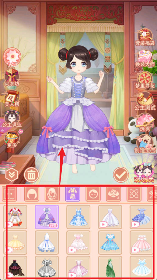 1、以宫廷换装为核心,上千件精美服饰支持自由混搭,染色系统打造专属造型。