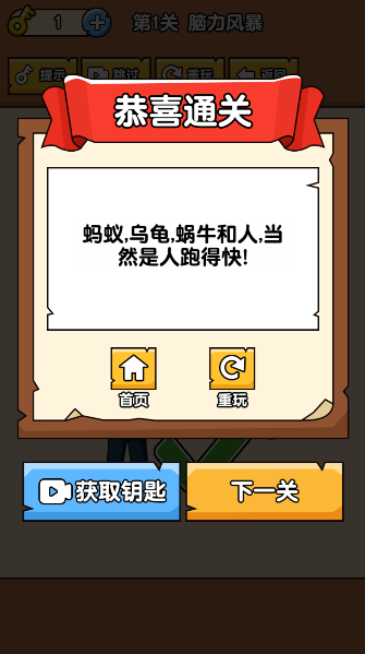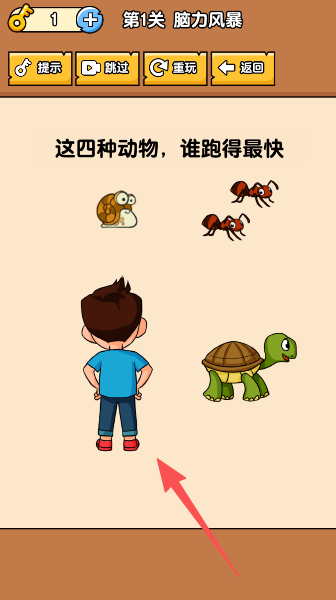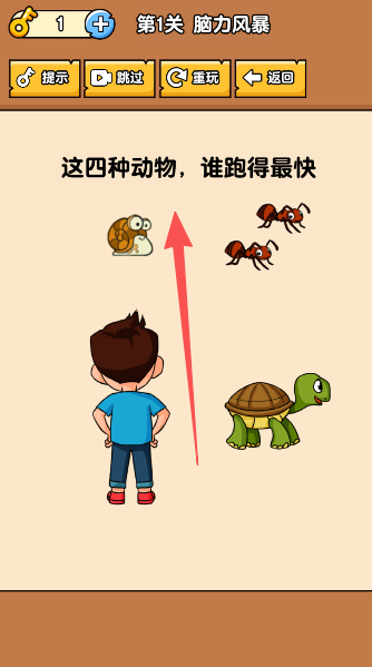 1、点开脑力风暴关卡,题目问哪种动物跑最快,可别被乌龟兔子骗啦。