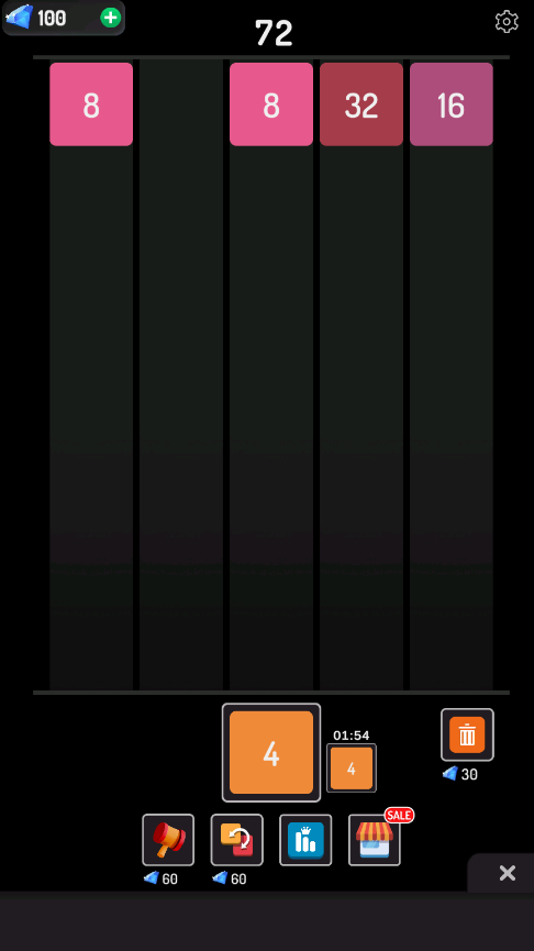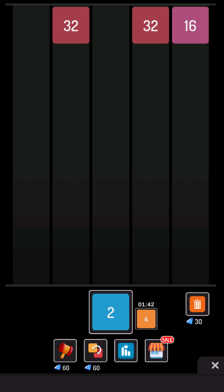 1、熟悉拖动手势操作,将底部数字块拖拽至棋盘对应列,释放后向上移动,使相同数值方块相邻触发合并,生成更高数值方块。