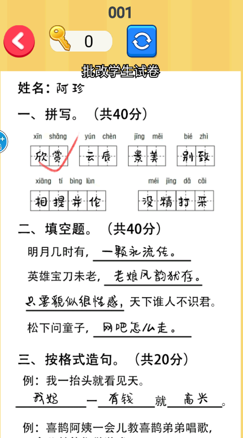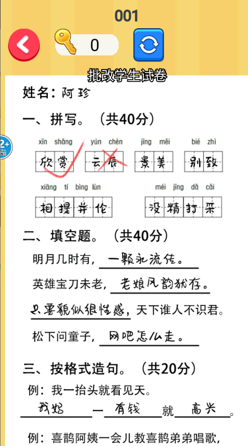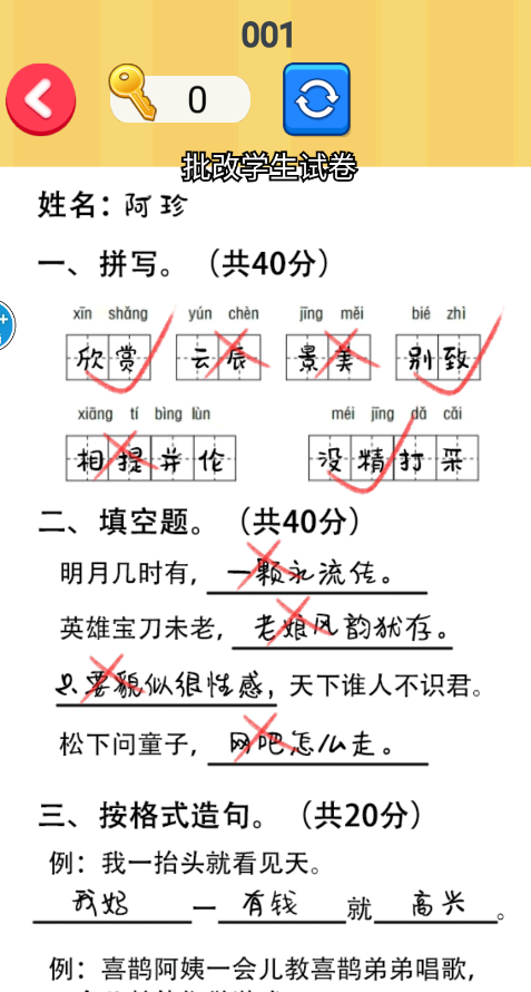 2、设置“批改达人”排行榜,实时更新全网批改速度与正确率数据,达成全对通关可解锁限定教具皮肤与教室装饰。