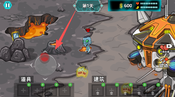 2、左手操控虚拟摇杆移动角色,在太空舱角落寻找氧气罐和能量棒。