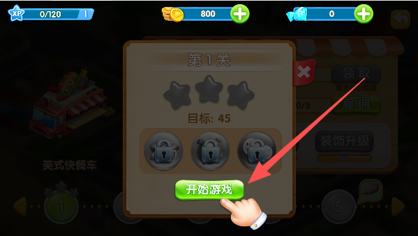 3、一直接单、烹饪、上菜,金币越来越多,顺利过关后领奖励进入新挑战。