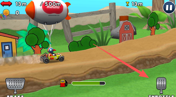 1、点击THROTTLE键发动引擎,小赛车嗖地冲出去,目标直奔500米外的终点线。