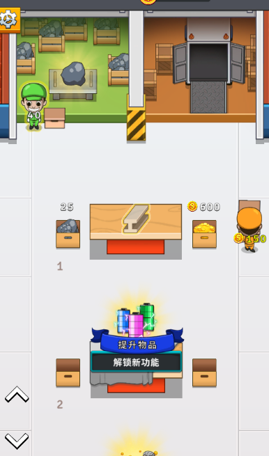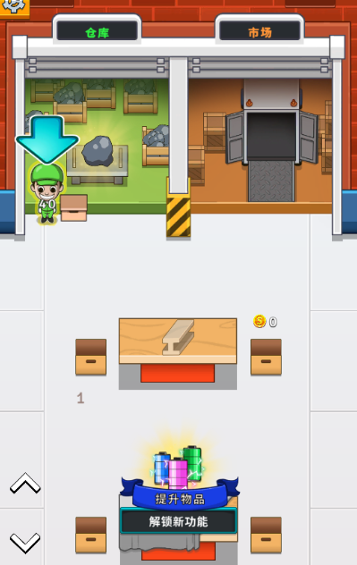 3、移动角色搬运货物,后期可解锁智能管理系统,实现多工厂同步运转与收益增长。