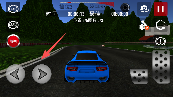 2、右手按住油门键不放,感受速度飙升的快感,让赛车如箭般飞驰。