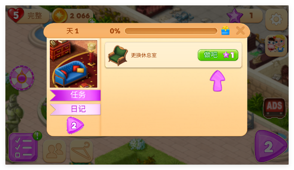 2、然后根据任务的提示,你会获得不同的装饰效果。