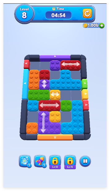 《Color Block Jam(色块果酱)》是一款融合色彩匹配与华容道玩法的休闲益智消除手游。以俄罗斯方块为灵感,打造造型多样、色彩鲜艳的立体方块,搭配直观操作,滑动方块即可匹配对应颜色的门,清空关卡道具。关卡丰富且难度递增,融入限时挑战、隐藏关卡等创新机制,既能放松解压,又能锻炼逻辑思维,解锁更高难度关卡收获满满成就感。