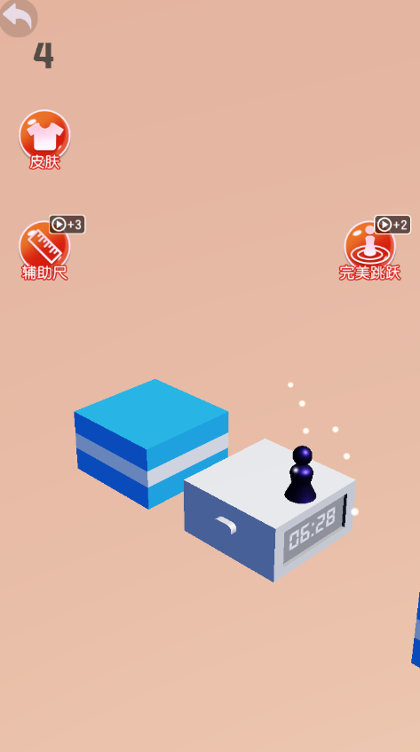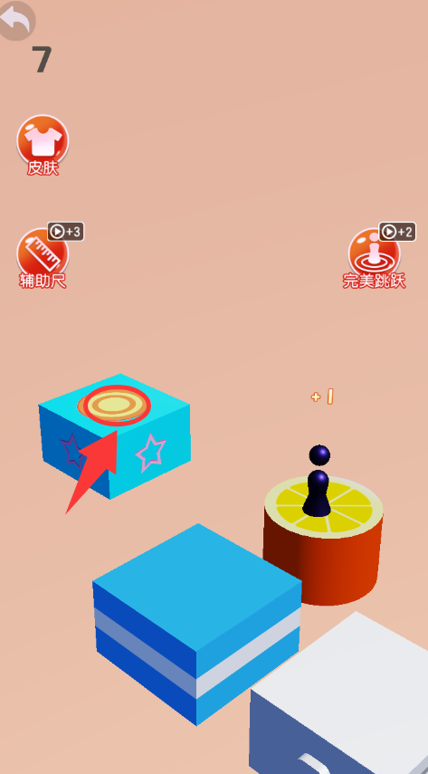 1、进入游戏后熟悉基础操作,轻按屏幕为方块蓄力,观察阴影预判落点,松开手指完成首次跳跃。