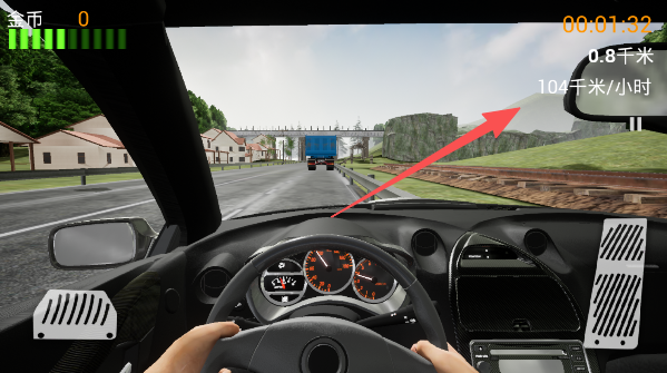1、第一人称驾驶视角,搭配方向盘、油门刹车等虚拟控件,操作逻辑贴近真实驾驶。