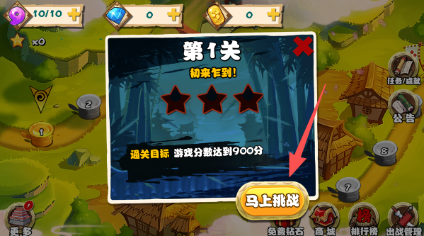 1、先盯紧目标分数条,今天要切满900分才能通关哦。