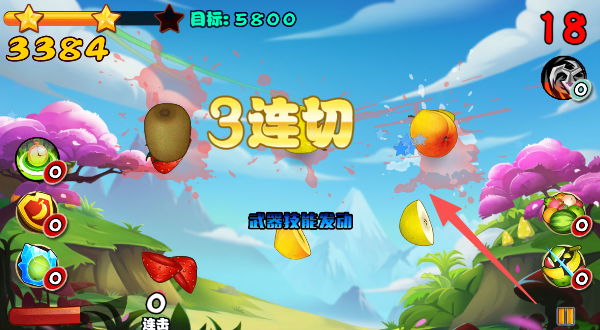 2、连击系统设计刺激,连续切割水果可触发分数加成,鼓励快速操作。