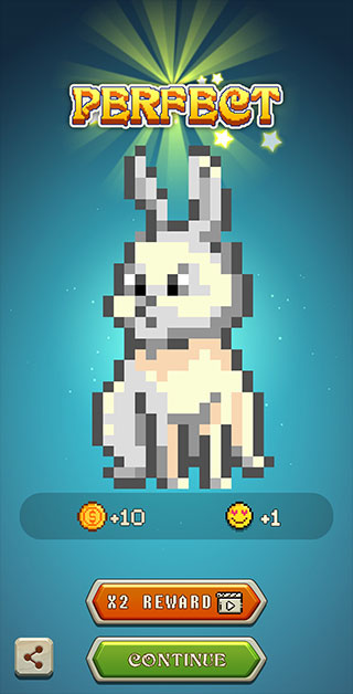 3、完成后,一只彩色的兔子就成功诞生了,把它放到你的像素岛屿上,可以提升你的等级获得相应的奖励哦。
