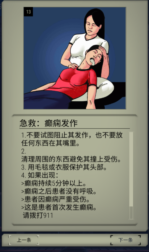 3、癫痫发作:用毛巾等衣物包裹头部,等待救援。