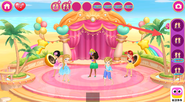 3、场景互动设计丰富,更换造型后可进入对应场景拍照,记录不同风格的派对造型。